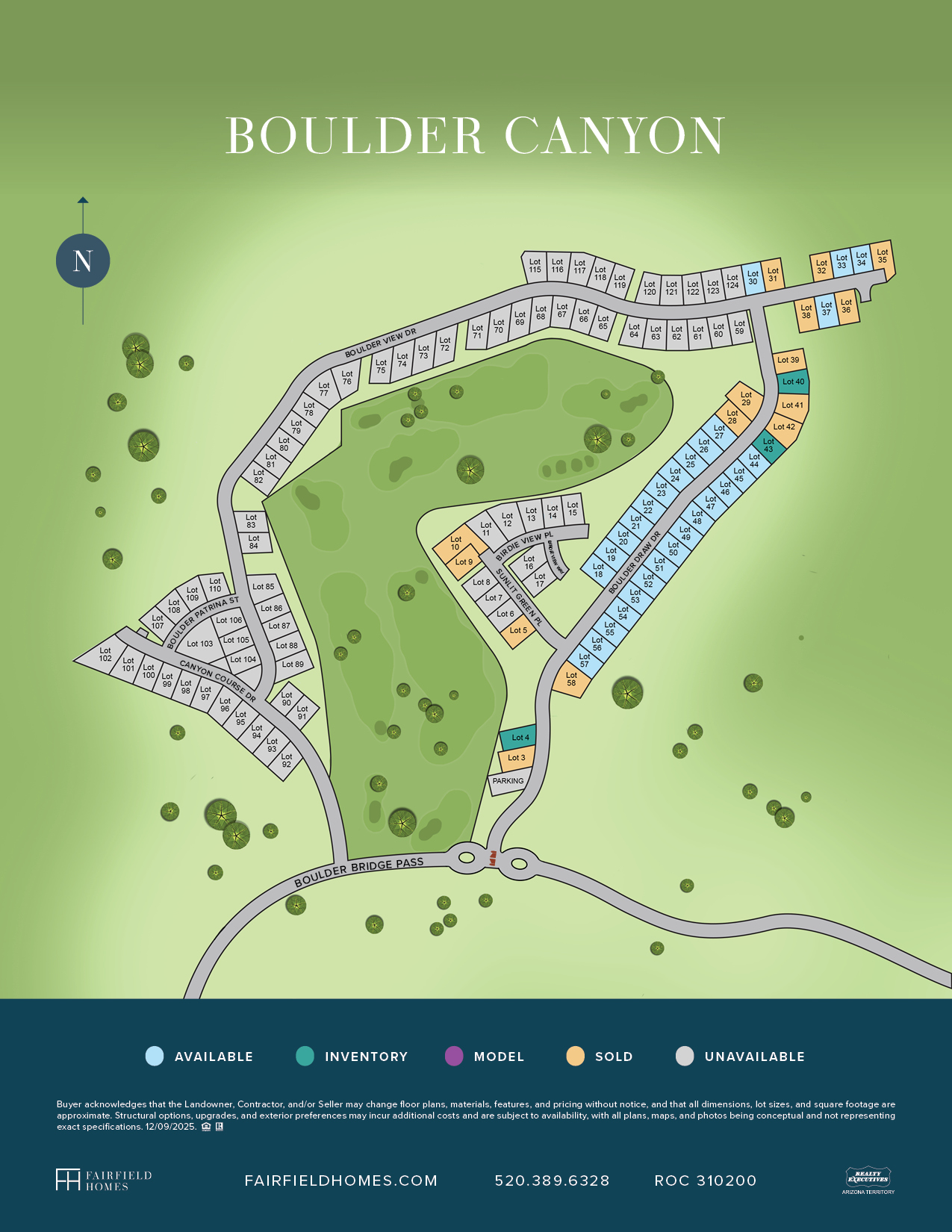 Within driving distance of downtown Tucson and beautiful nature preserves and parks, Fairfield Homes at Boulder Canyon boasts access to both worlds for individuals who enjoy life’s comforts and nature’s beauty. Enjoy Dove Mountain golf courses, tennis courts, the Luxury Ritz-Carlton Hotel, and other activities. Spend the day exploring nearby Catalina State Park, Saguaro National Park, or Wild Burro Trailhead, the gateway into the Tortolita Mountains, featuring beautiful wildflowers, stunning wildlife, and quality views.
