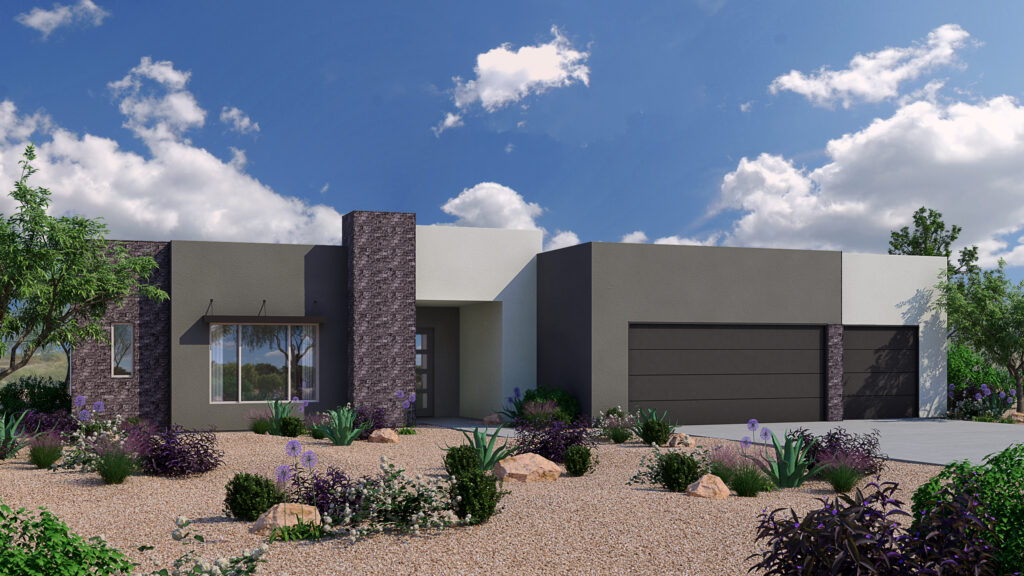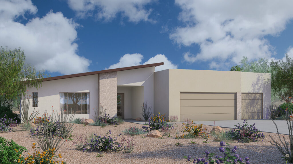A statement entry door welcomes you into a home with a thoughtful floor plan that flaunts a stunning kitchen, luxurious bathrooms, high ceilings, glass sliders, elegant tile flooring, and energy-efficient design and appliance choices. Each home promises true comfort and style, from the granite slab countertops to the bathroom fixtures. The architectural design ensures gorgeous desert views to greet you every morning.