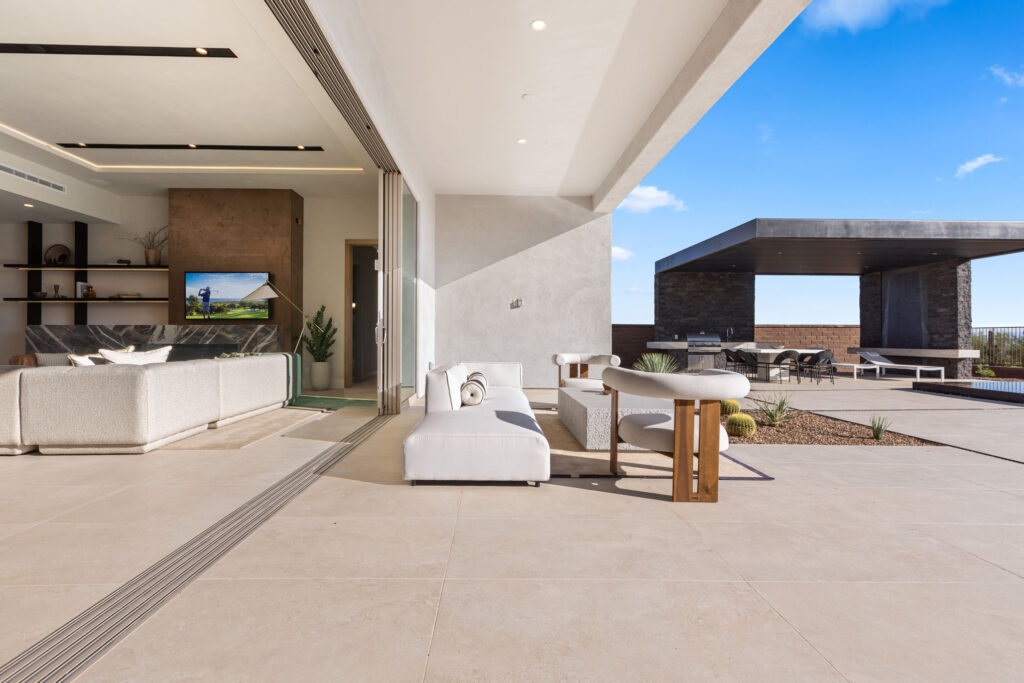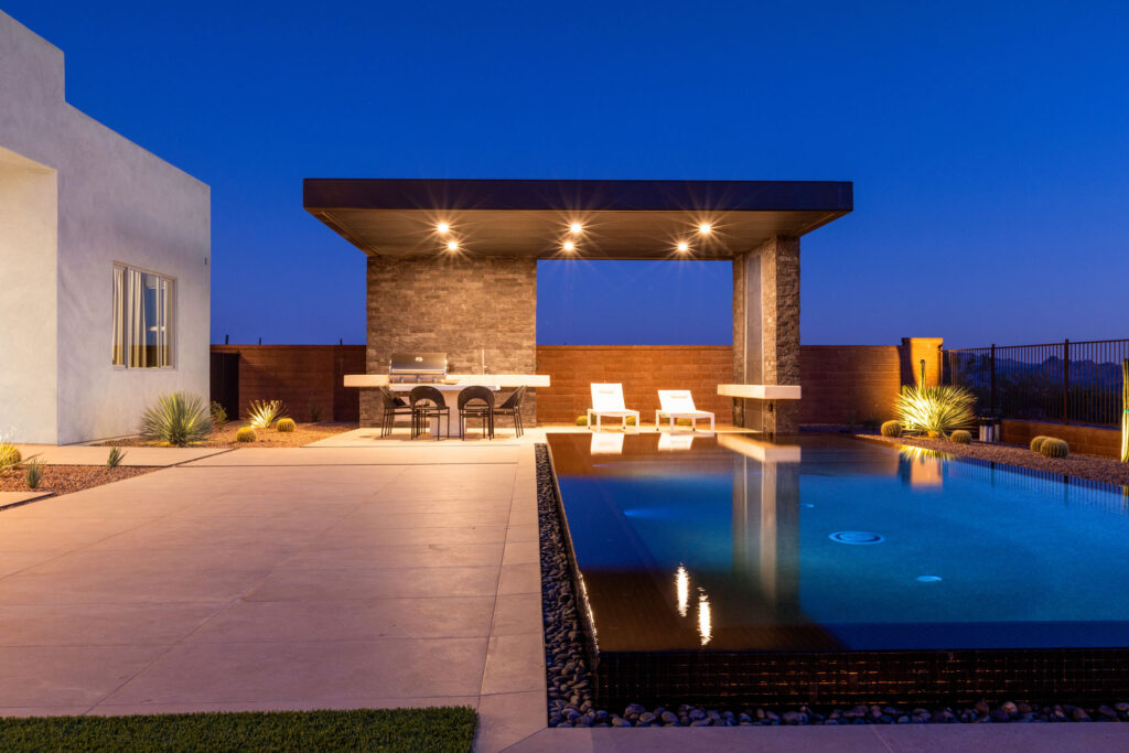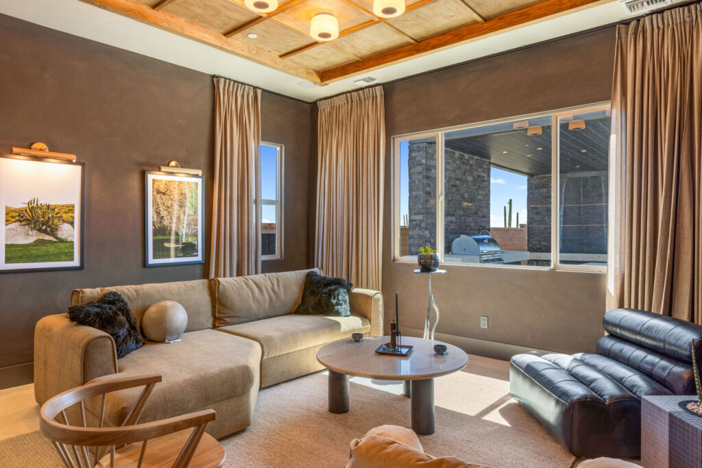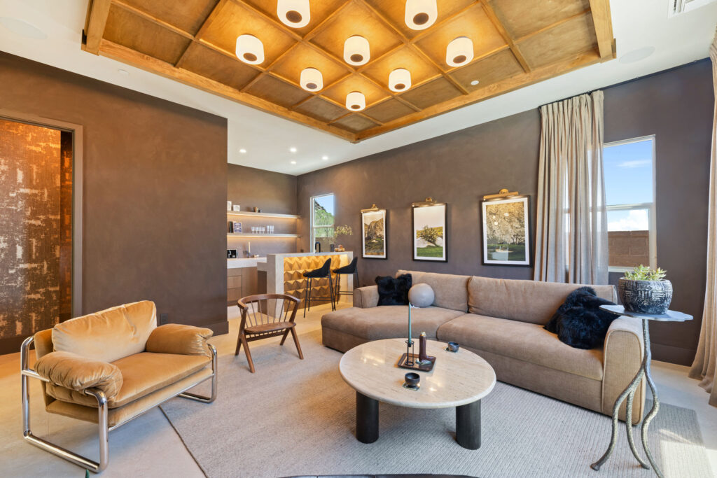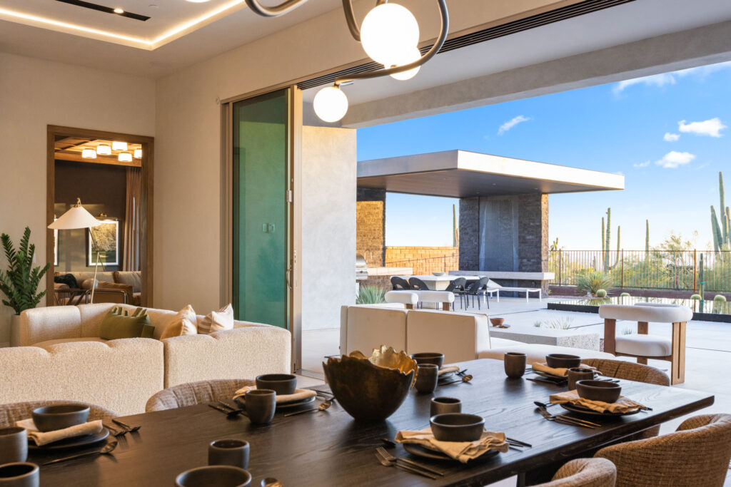 A statement entry door welcomes you into a home with a thoughtful floor plan that flaunts a stunning kitchen, luxurious bathrooms, high ceilings, glass sliders, elegant tile flooring, and energy-efficient design and appliance choices. Each home promises true comfort and style, from the granite slab countertops to the bathroom fixtures. The architectural design ensures gorgeous desert views to greet you every morning.