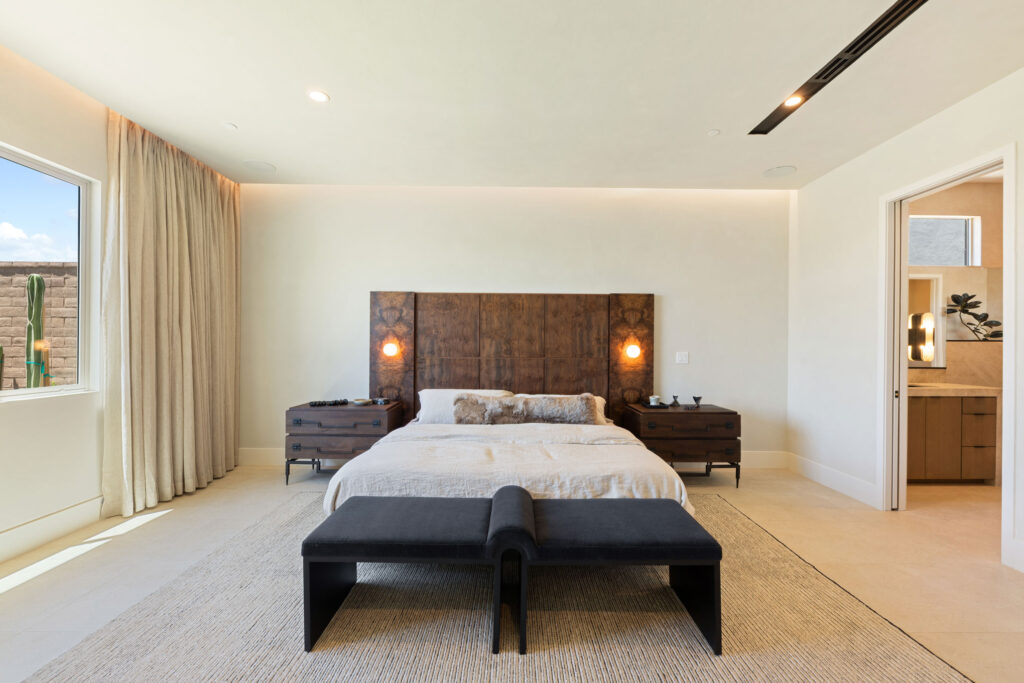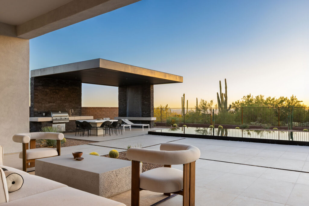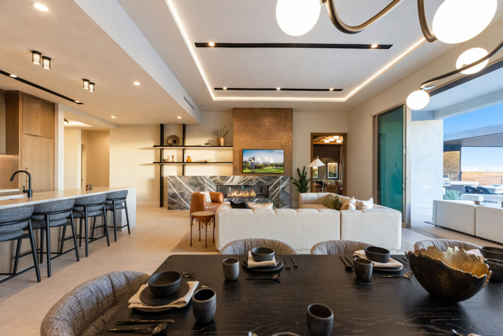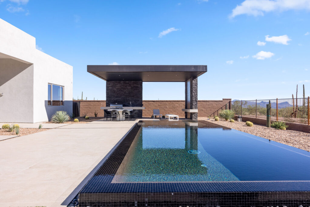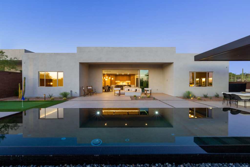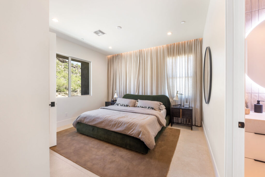 A statement entry door welcomes you into a home with a thoughtful floor plan that flaunts a stunning kitchen, luxurious bathrooms, high ceilings, glass sliders, elegant tile flooring, and energy-efficient design and appliance choices. Each home promises true comfort and style, from the granite slab countertops to the bathroom fixtures. The architectural design ensures gorgeous desert views to greet you every morning.